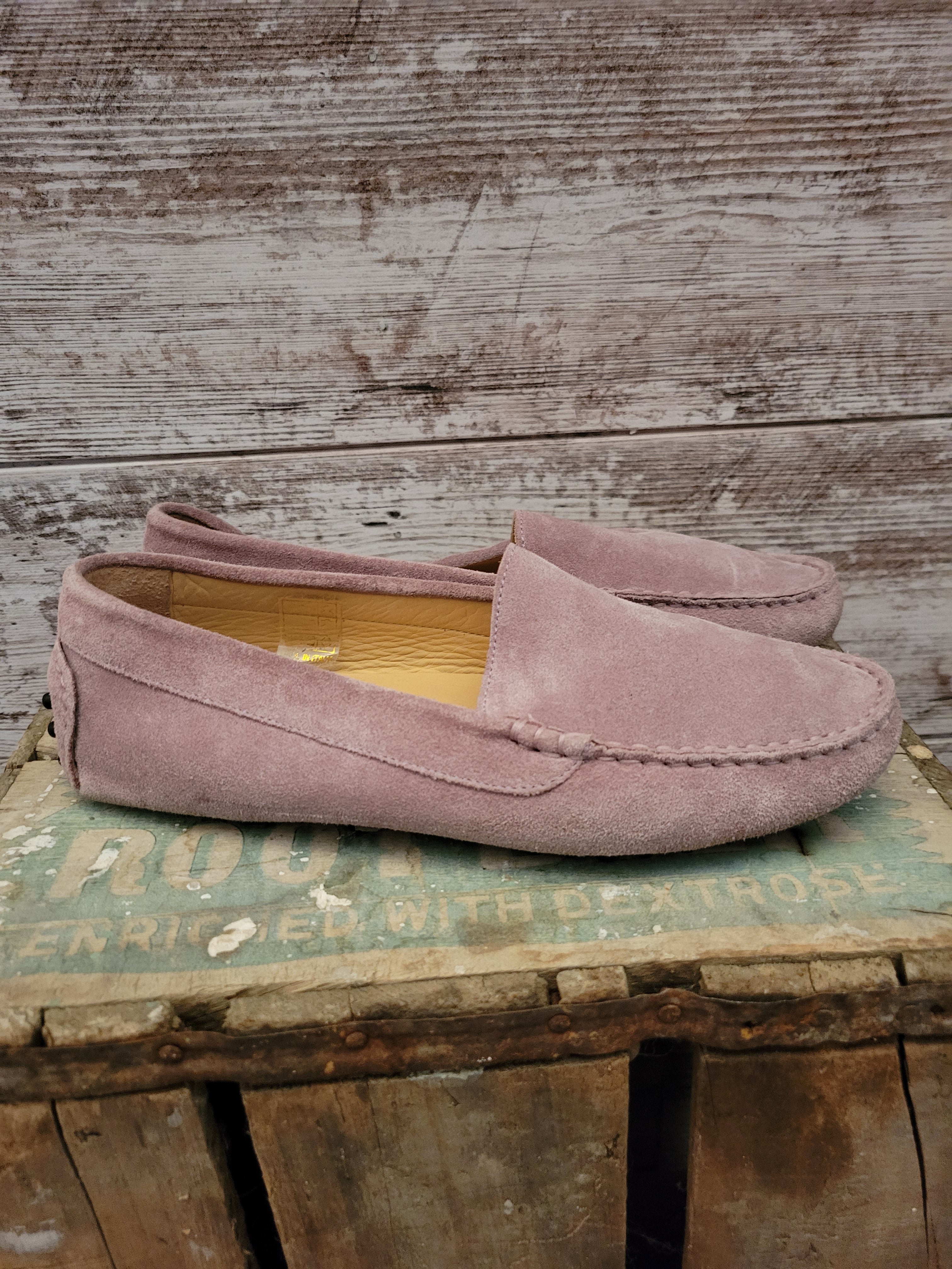 True moccasin construction using one piece off suede that molds to your foot for a glove like fit