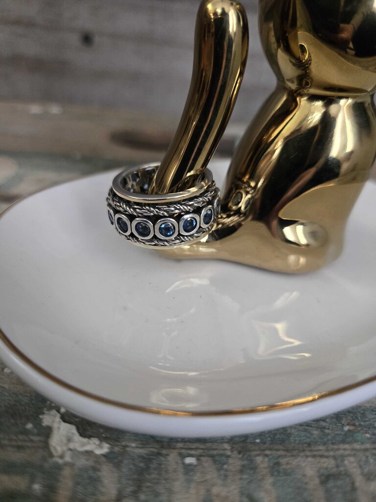 Sterling Silver and 14k Gold Blue Topaz Spinner Ring